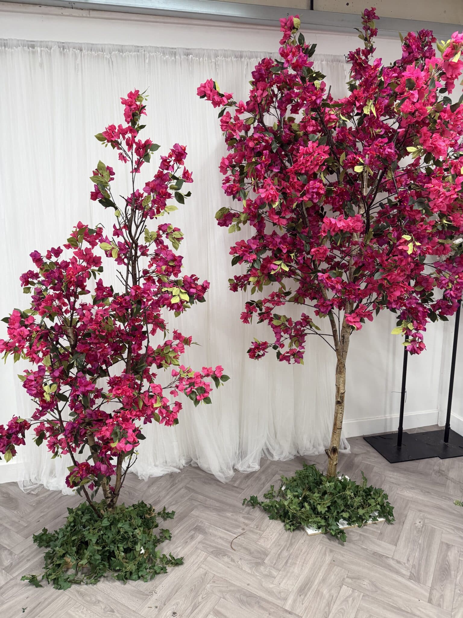 Each tree is crafted using high-quality artificial bougainvillea blossom, combined with real, natural trunks that have been carefully selected, treated and preserved. This blend of lifelike foliage and authentic timber gives the trees a highly realistic appearance, with beautiful variation in form, texture and movement.