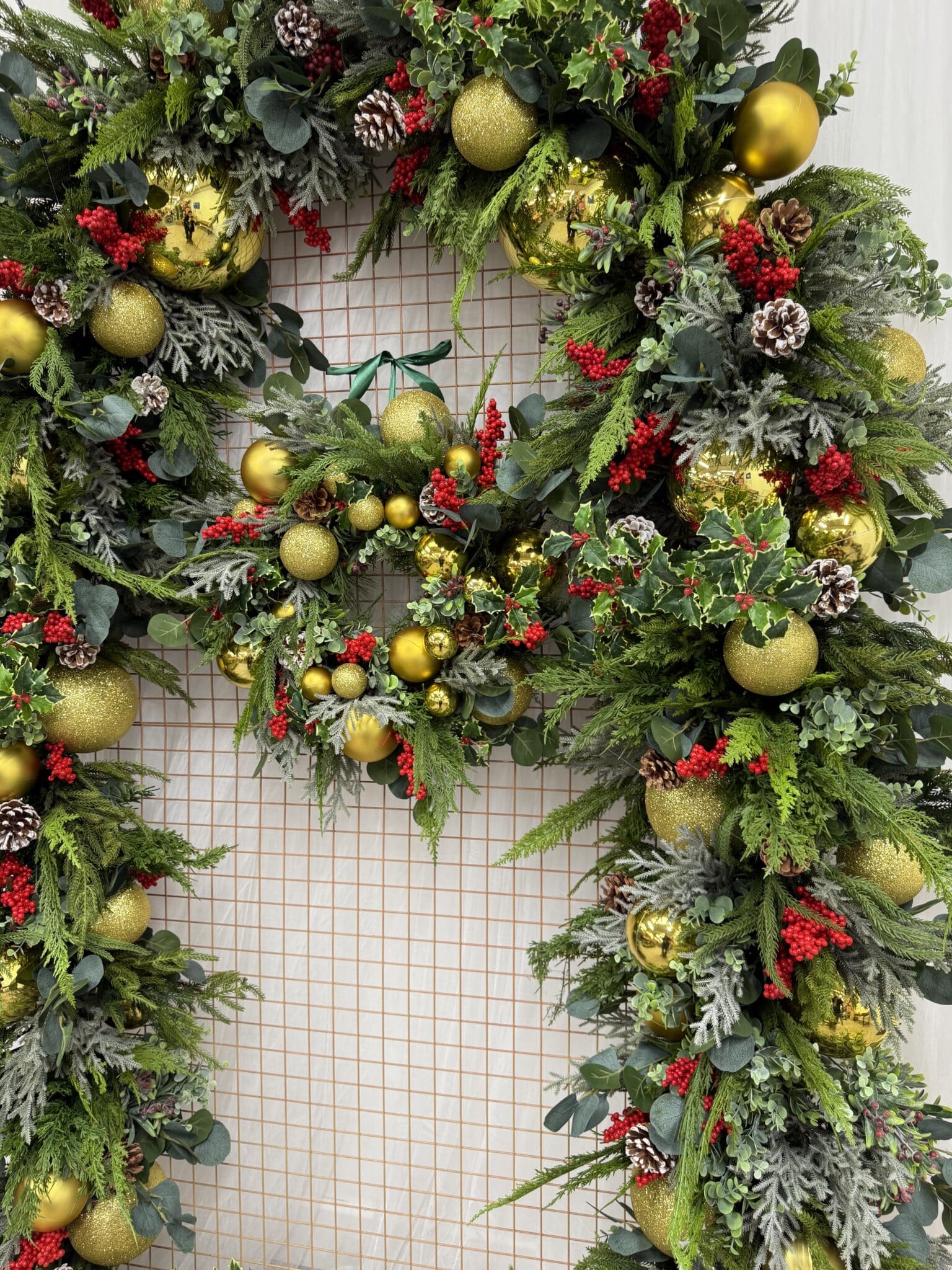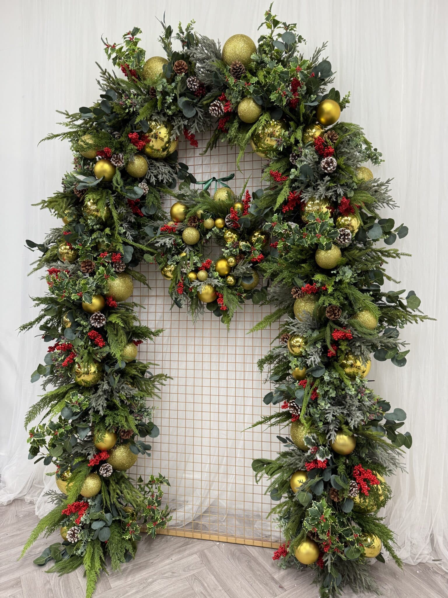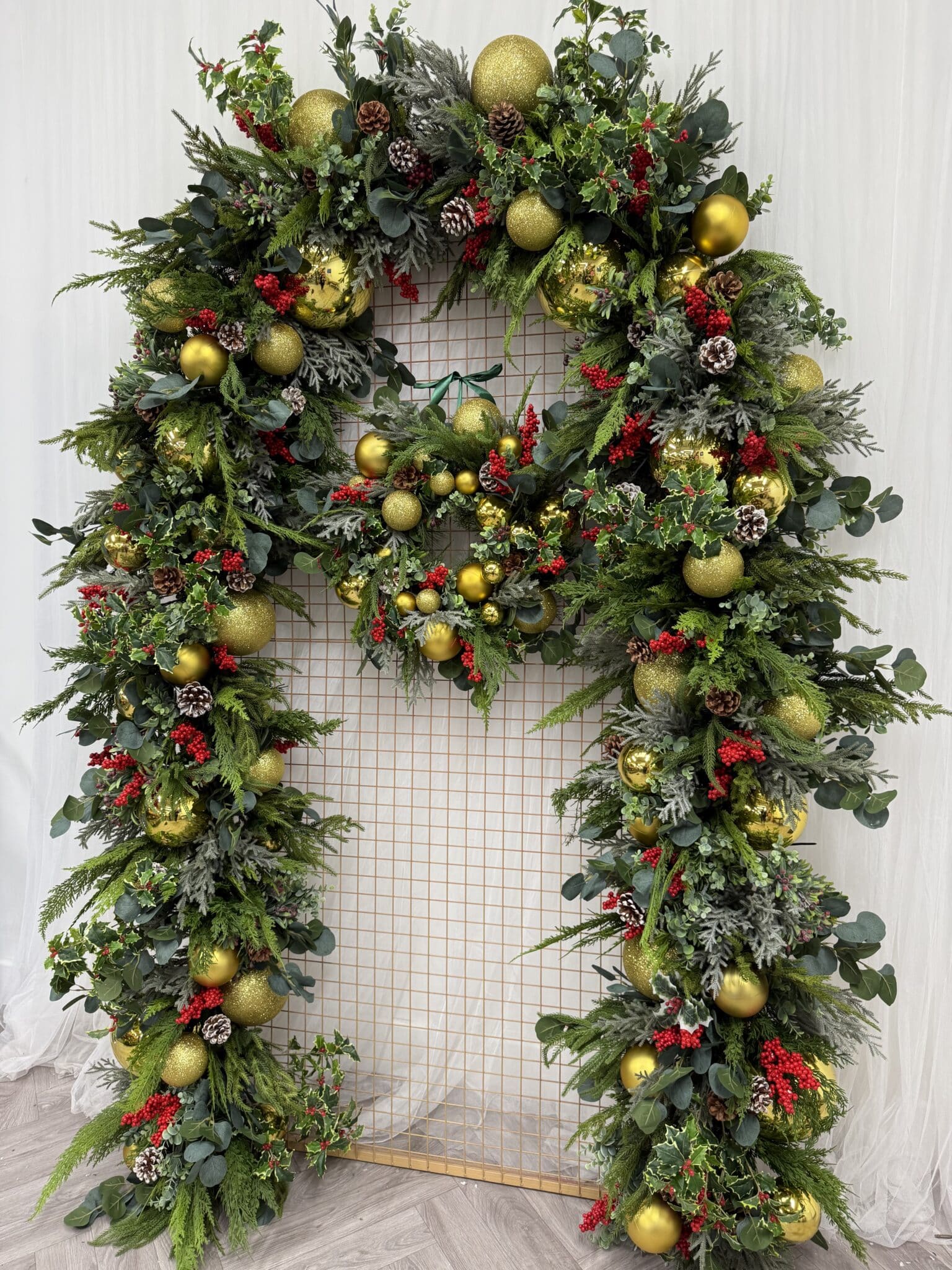 This luxury Christmas garland and wreath set combines festive tradition with refined craftsmanship. Elegant, full, and bursting with seasonal colour, it creates a warm and welcoming atmosphere for guests and customers alike. Whether adorning your doorway or framing an event entrance, it adds a touch of sophistication and Christmas magic to any setting