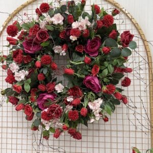 XL Red Flower Door Wreath & Coordinating XL Hanging Basket (65–70 cm) FAQs